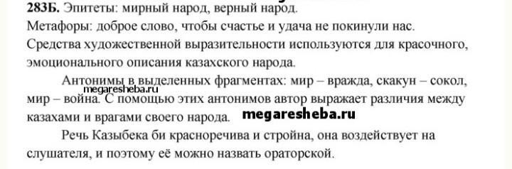 283Б. Прочитайте часть текста, в которой автор характеризу- ет казахов. Найдите эпитеты, метафоры. спишите антонимы ,и к какому стилю относится текст ?помогите