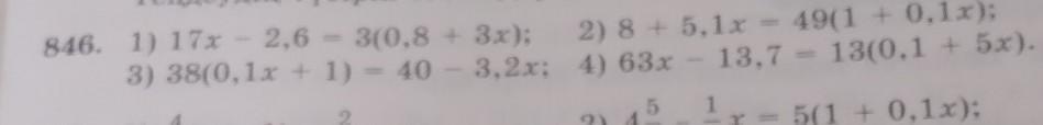 1) 17x – 2,6 = 3(0,8 + 3x); 2) 8 + 5,1x = 49(1 + 0,1x); 3) 38(0,1x + 1) = 40 - 3,2x; 4) 63x – 13,7 = 13(0,1 + 5x). – - помогите решить корень