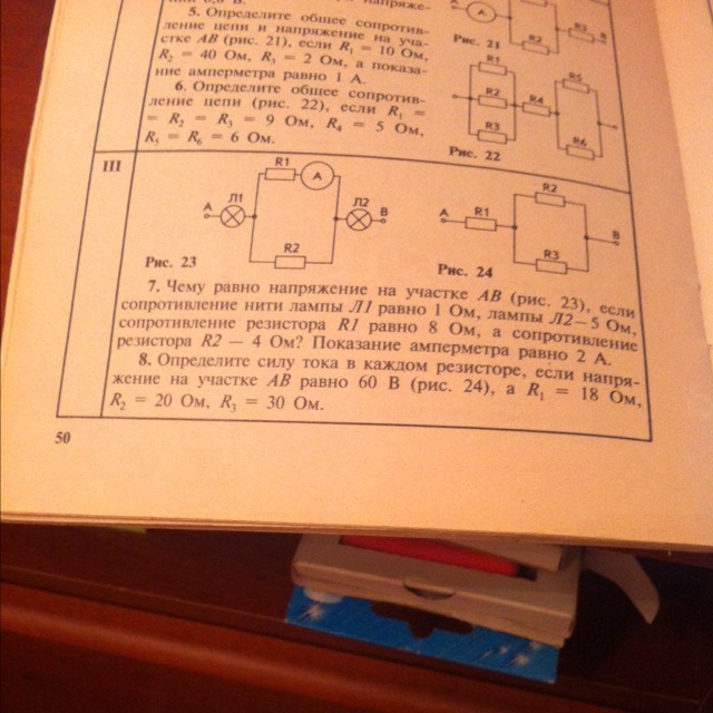 №7 если на верхней линии показания амперметра-2 то на нижней 4 так как снизу сопротивление в 2 раза меньше, а значит общая сила тока равна 6 А