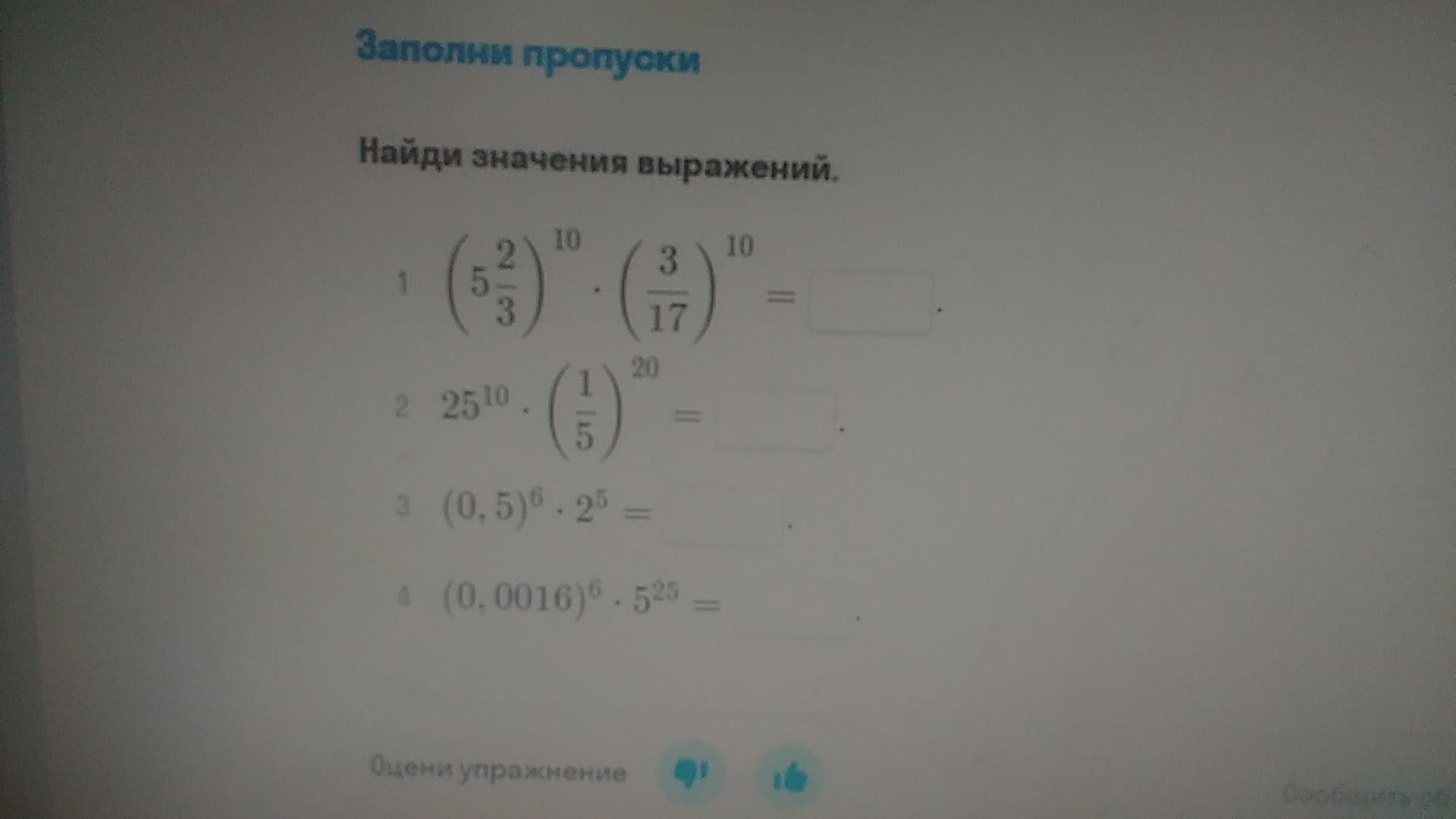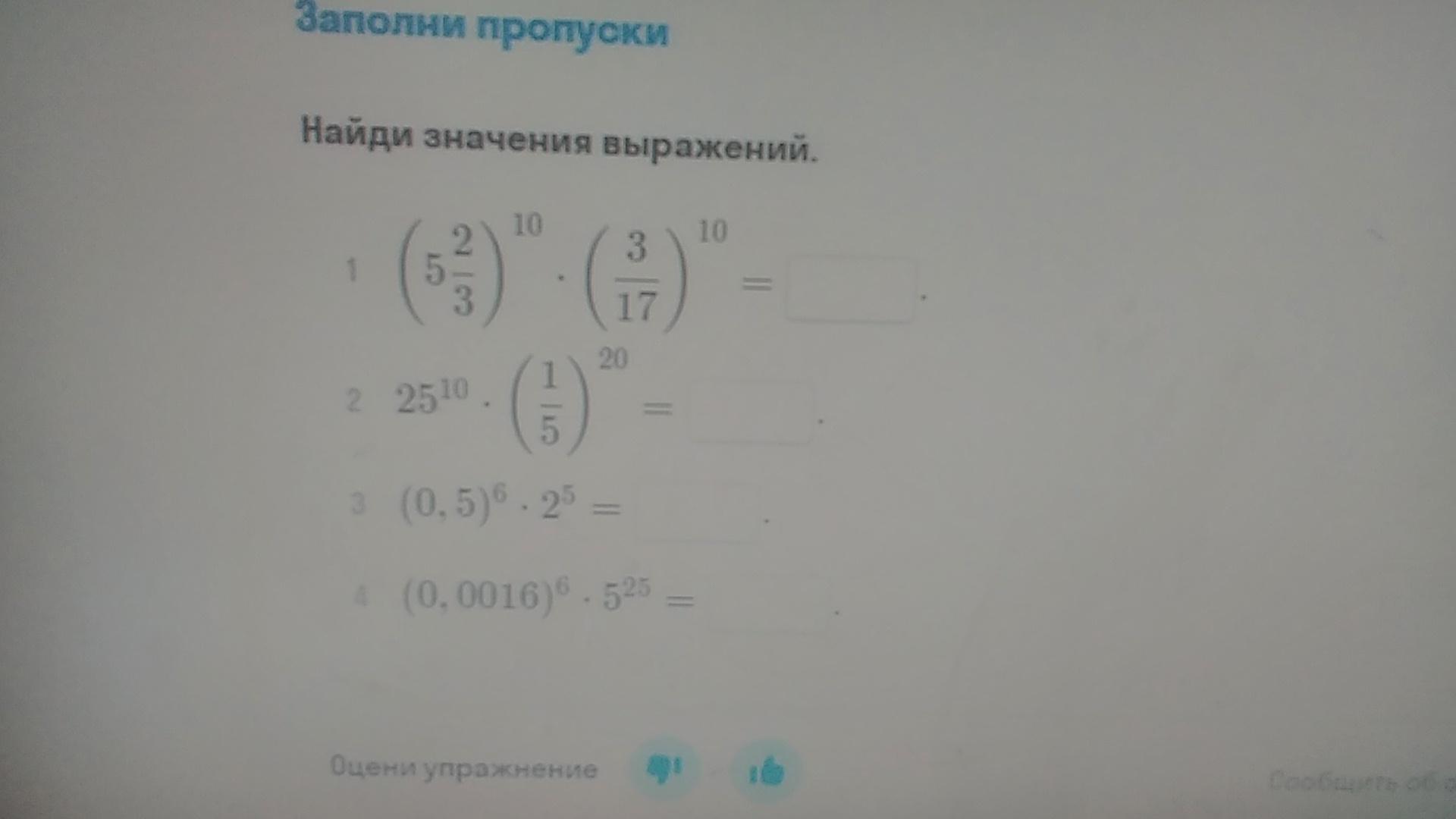2) (17/3)¹⁰*(3/17)¹⁰=1¹⁰=1