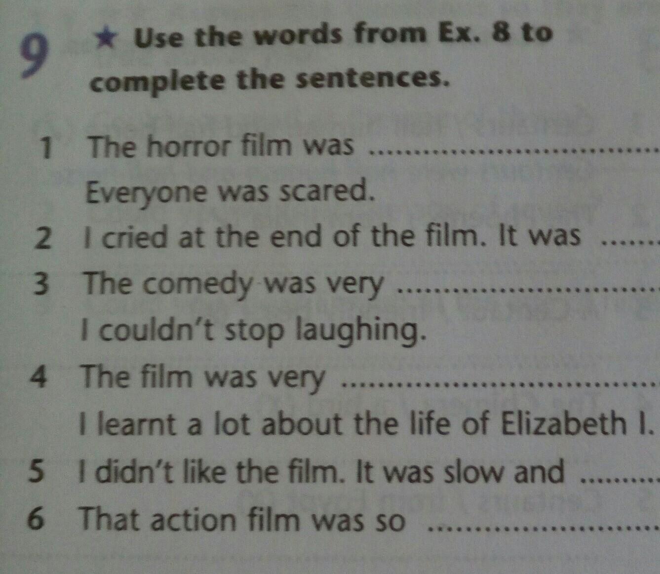 1.funny 2.boring 3.exciting 4.frightening 5.interesting 6.sad
