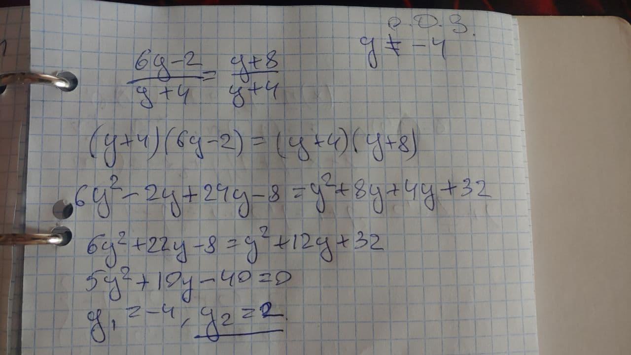 По т. Виета получим, что у=2 и -4, но "-4" не подходит по ОДЗ. Ответ: у=2.