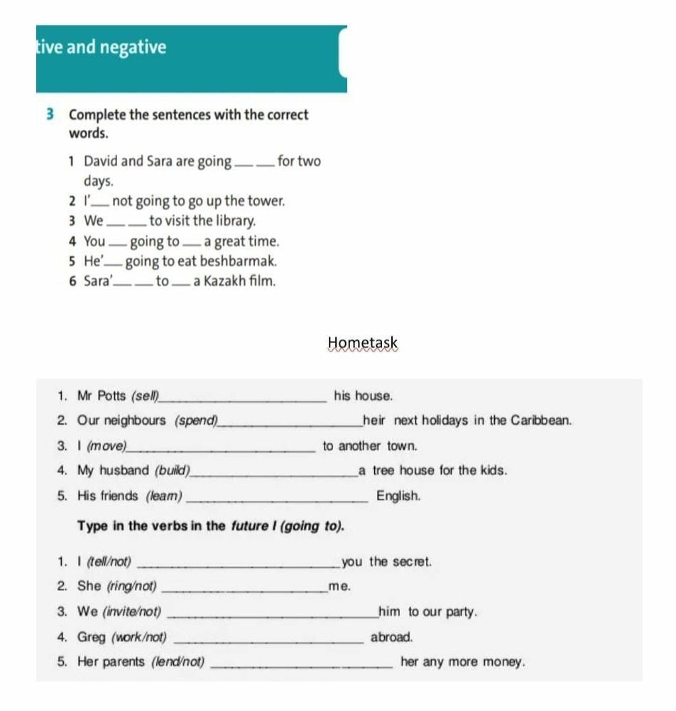 5. He's going to eat beshbarmak. 6. Sara's going to watch a Kazakh film.