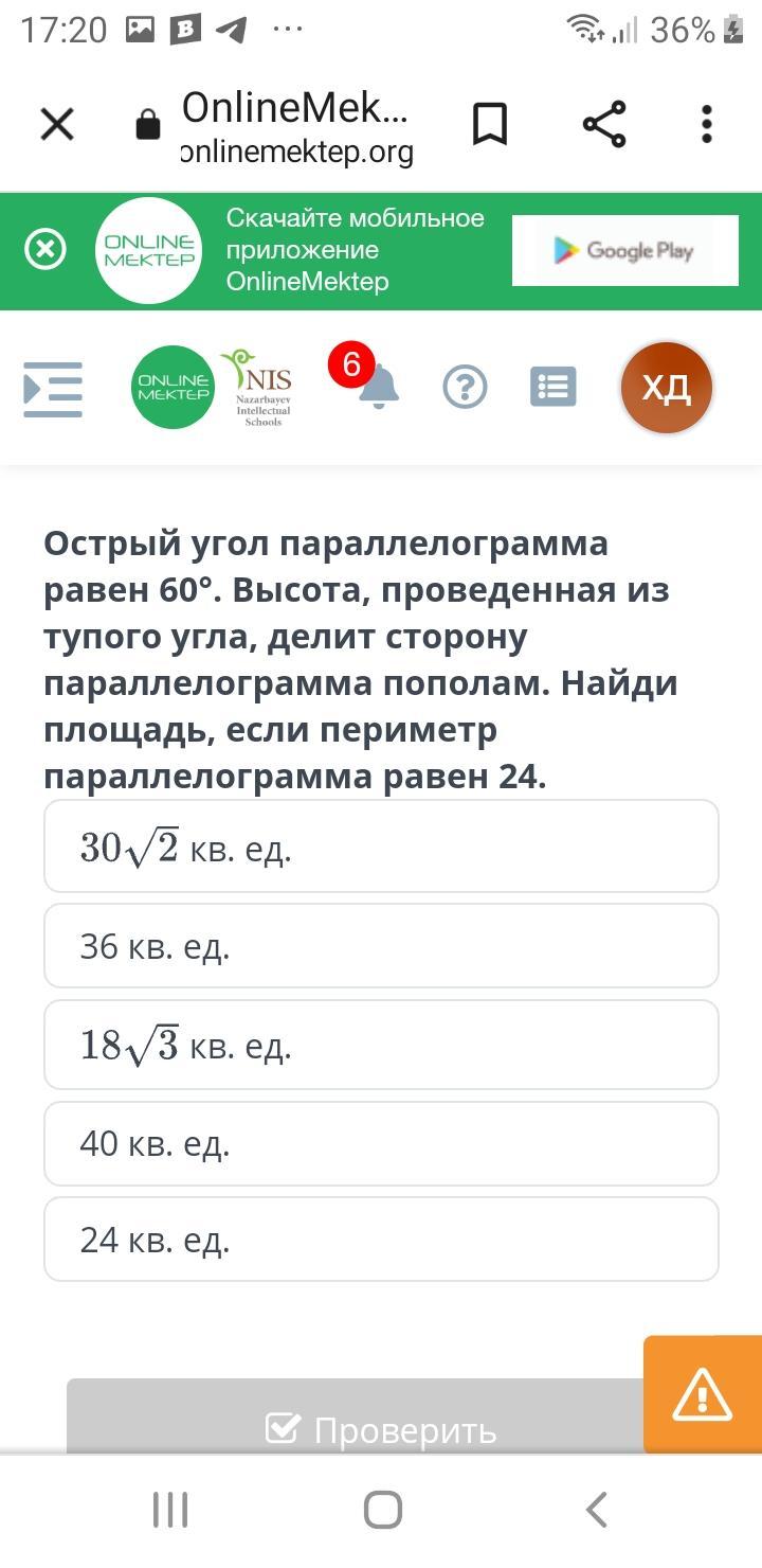 Острый угол параллелограмма равен 60⁰. Высота проведённая из тупого угла, делит сторону параллелограмма пополам. Найди площадь если периметр параллелограмма равен 24.