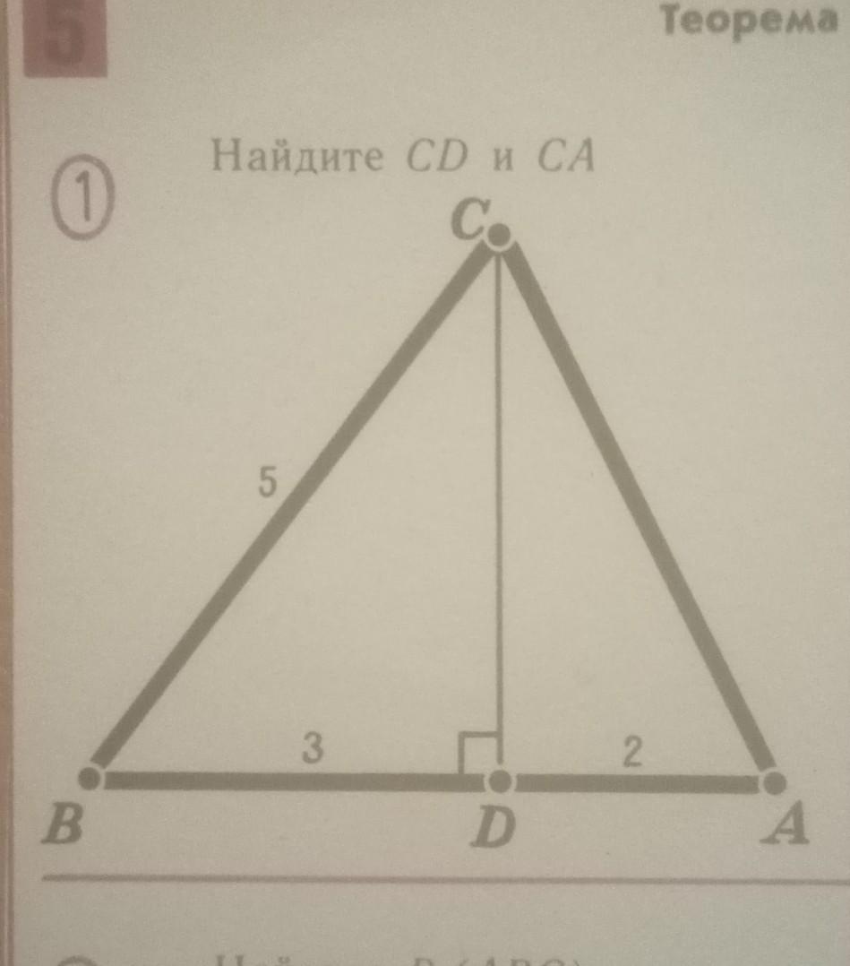 По теореме пифагора CD²+3²=5², то есть 5²-3²=CD²=25-9=16=4², CD равно 4 также находим и СА