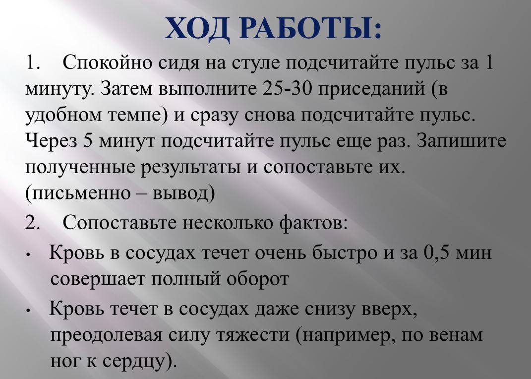 За 25-30 приседаний: пульс:86 ударов в мин.