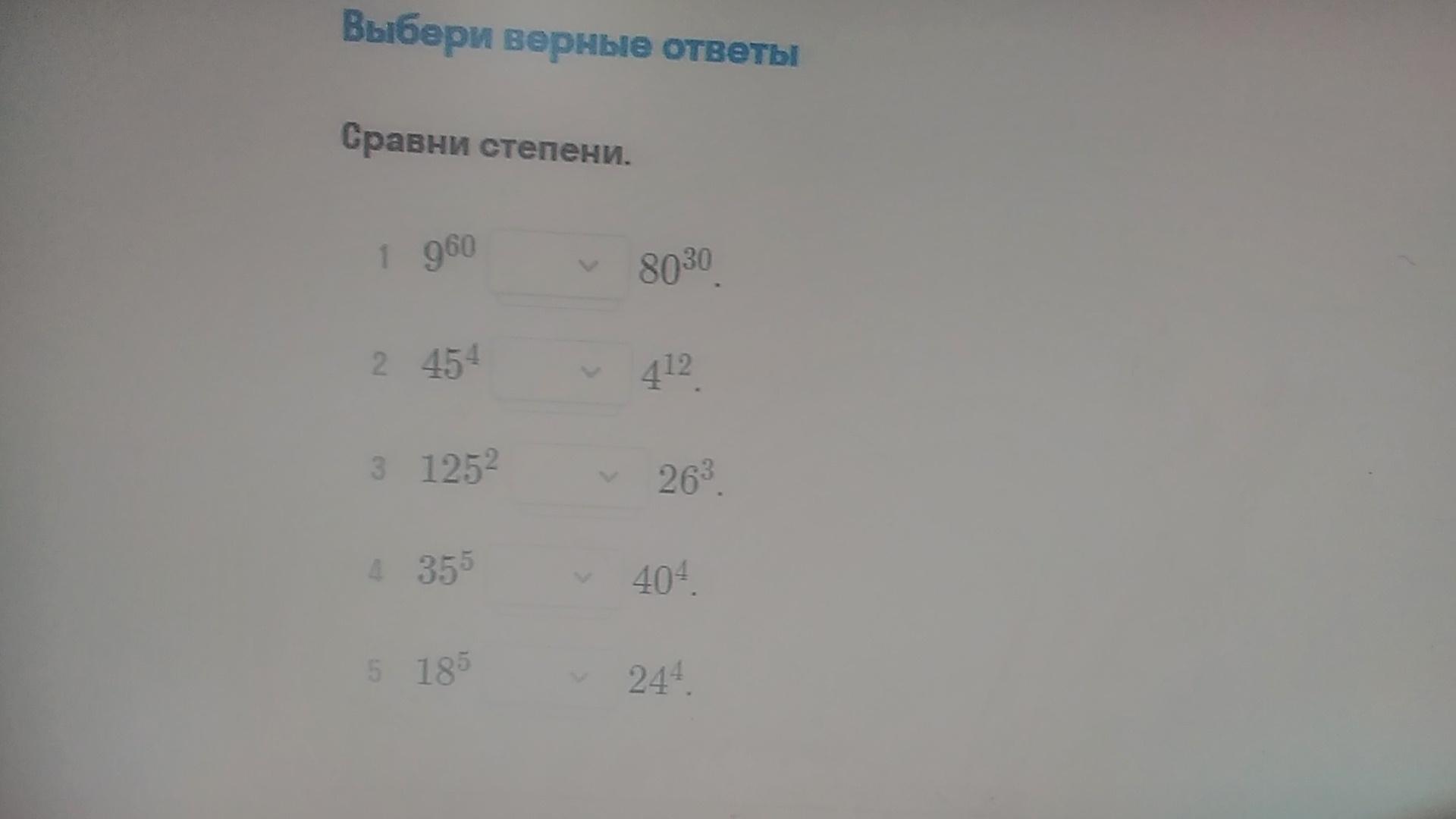 Задание : сравнить степени!!!!!!!