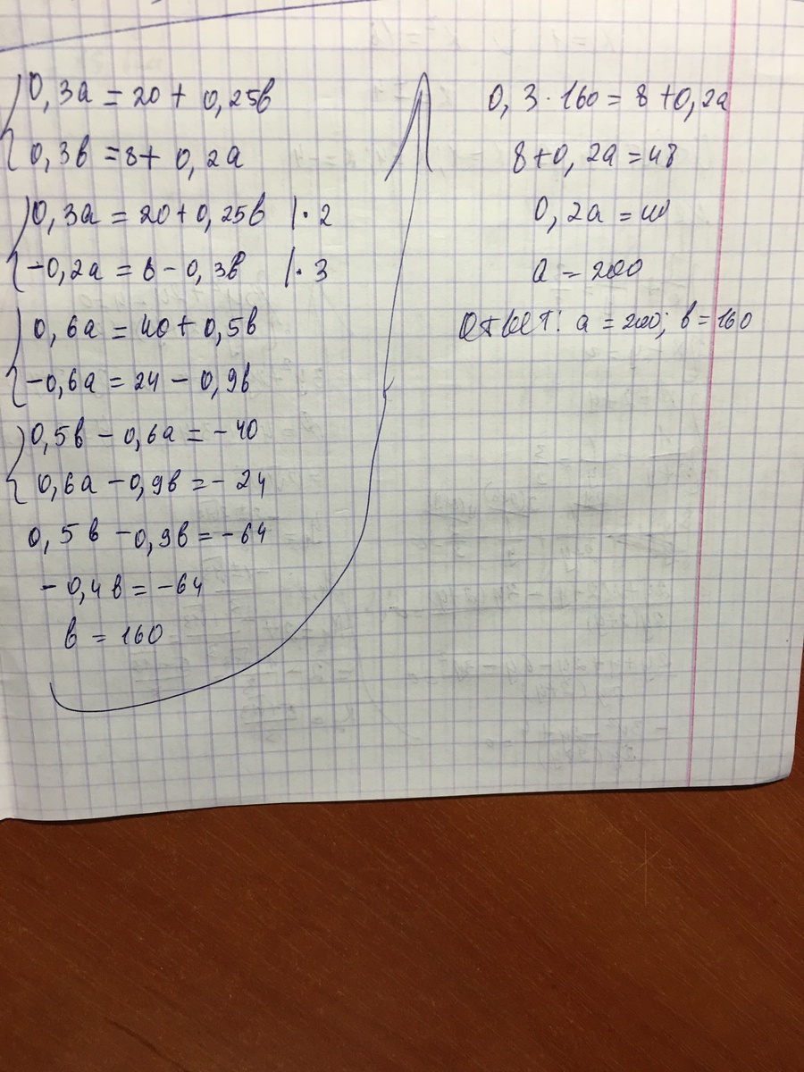Известно, что 30% числа a на 20 больше, чем 25% числа b, а 30% числа b на 8 больше, чем 20% числа a. Найдите числа a и b.