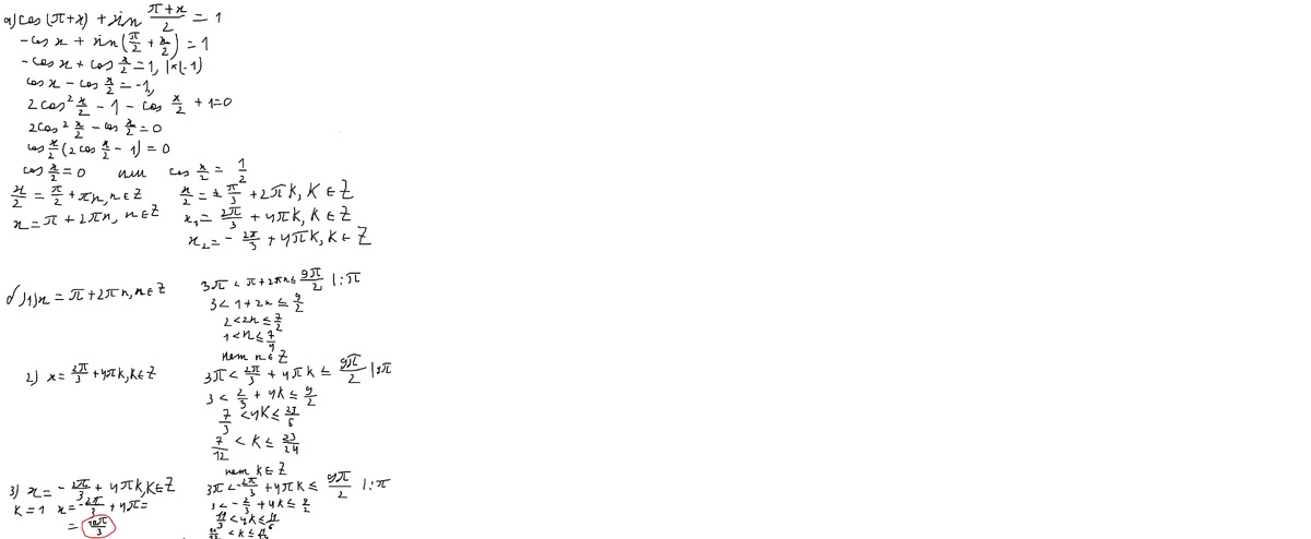 Ответ: а)пи + 2пиn; +-2пи/3 + 4пиk, n,k ∈ Z