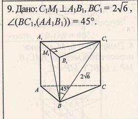 ВМ₁- проекция ВС₁ на (АА₁В₁), действительно, по условию А₁С₁⊥А₁В₁, А т.к. призма правильная. то АА₁⊥А₁В₁, и тогда С₁М₁ - перпендикулярна плоскости (АА₁В₁) по признаку перпендикулярности прямой и плоскости, а т.к. ∠М₁В₁С=45°, то в прямоугольном треугольнике