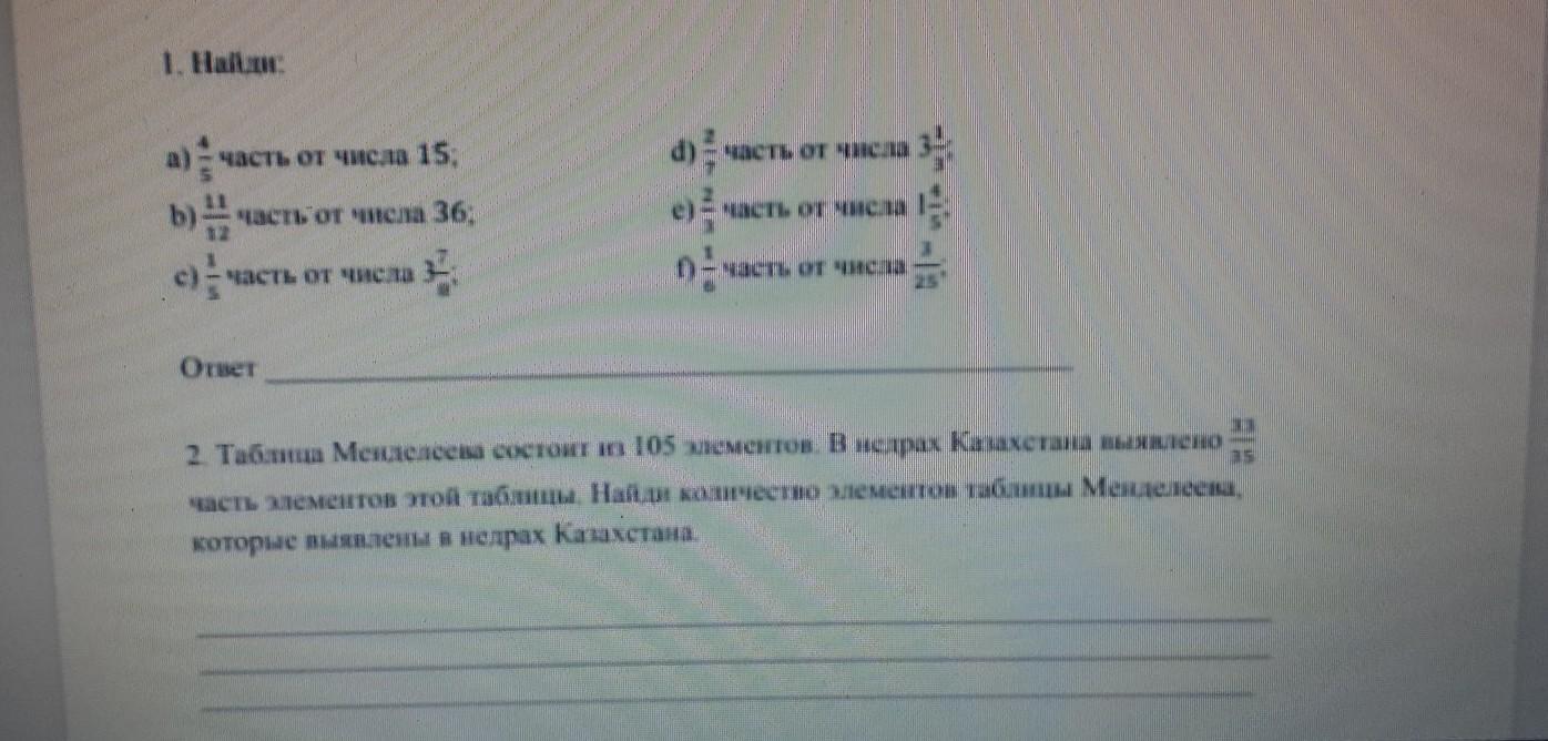 1)чтобы найти дробь от числа, надо число умножить на дробь. если не учили умножение. то надо число разделить на знаменатель и умножить на числитель. это одно и то же. что и умножить дробь на число.)