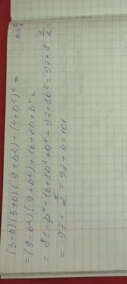 (9-b²)(9+b²)+(4+b²)²=81-b⁴+16+8b²+b⁴=8b²+97