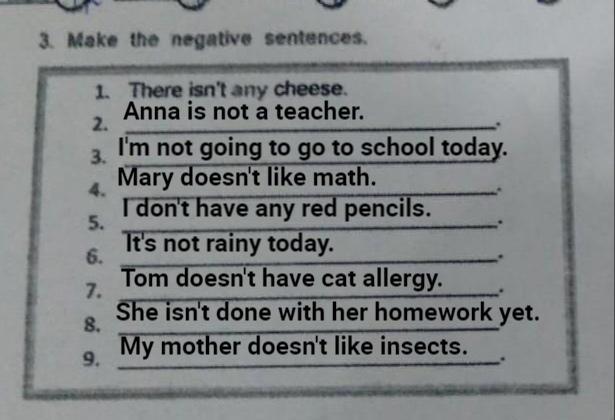 Если я правильно поняла, то здесь нужно написать любые примеры отрицательных предложений.