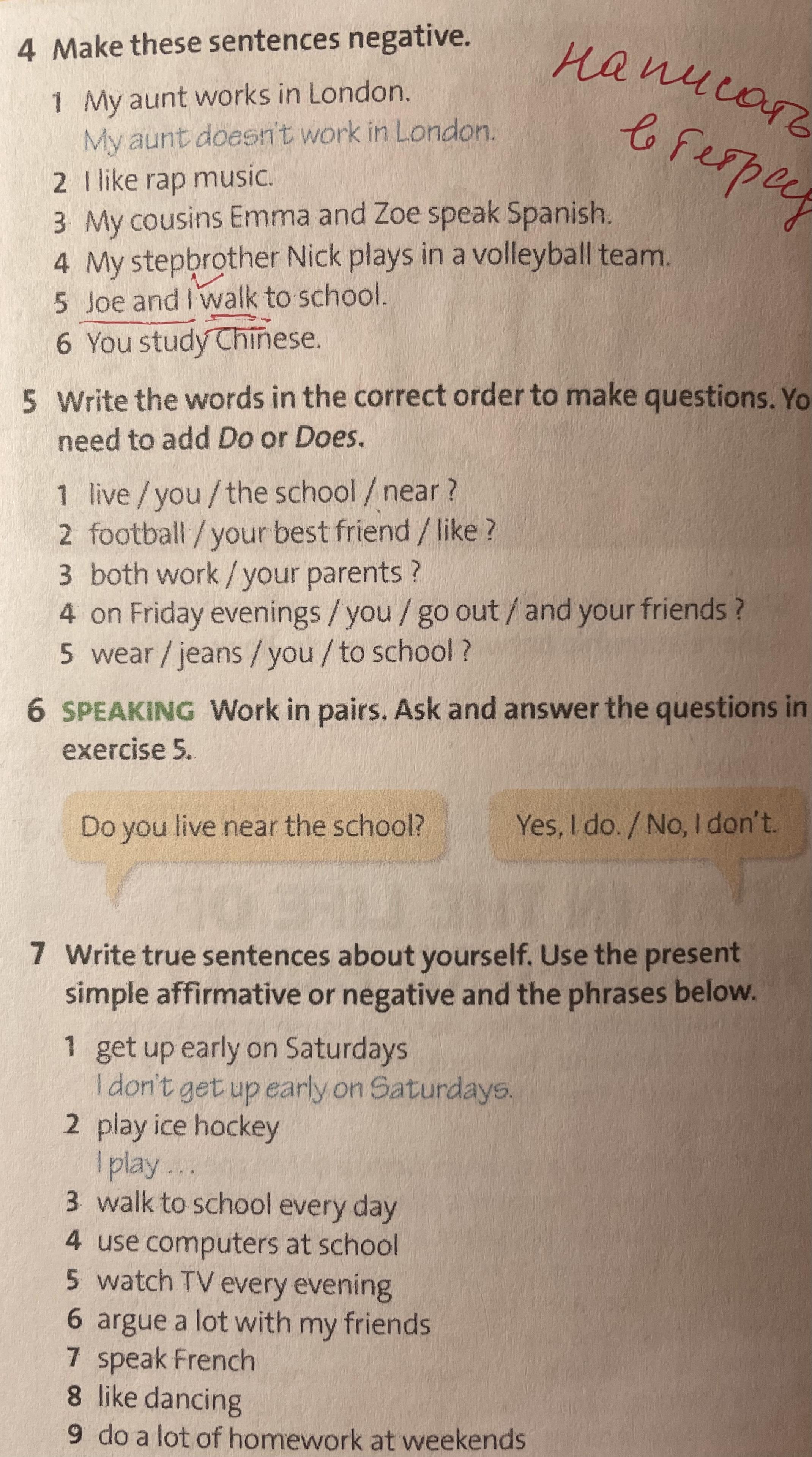 3)My cousins Emma and Zoe don`t speak Spanish.
