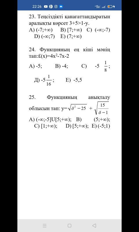 Ответ: D) δЄ [ 5 ; + ∞ ) .