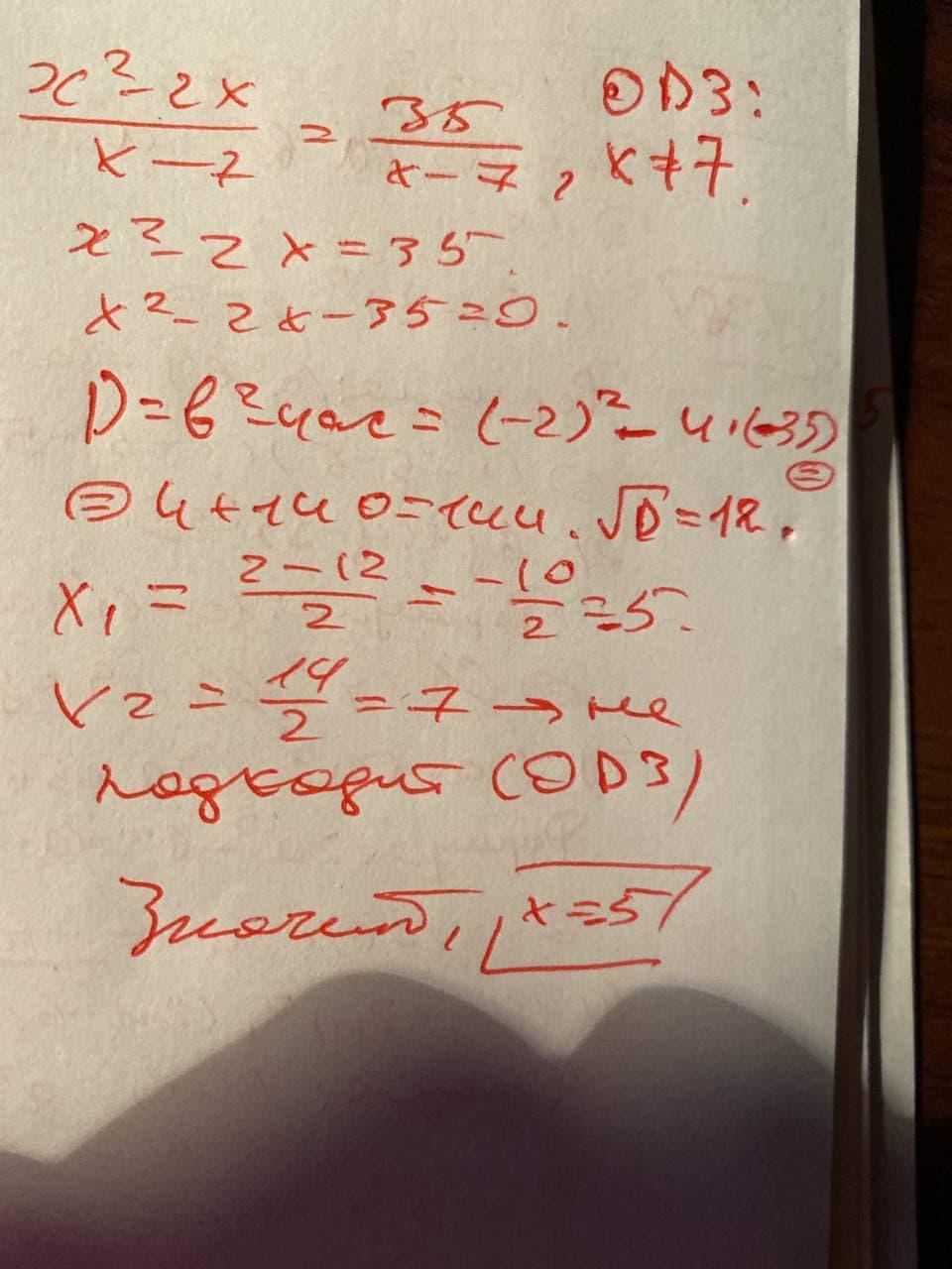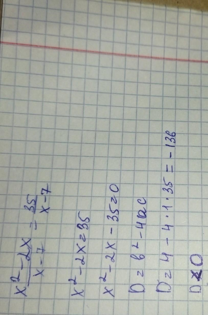 Неправильно посчитан дискриминант, поскольку будет не умножить на 35, а умножить на (-35).
