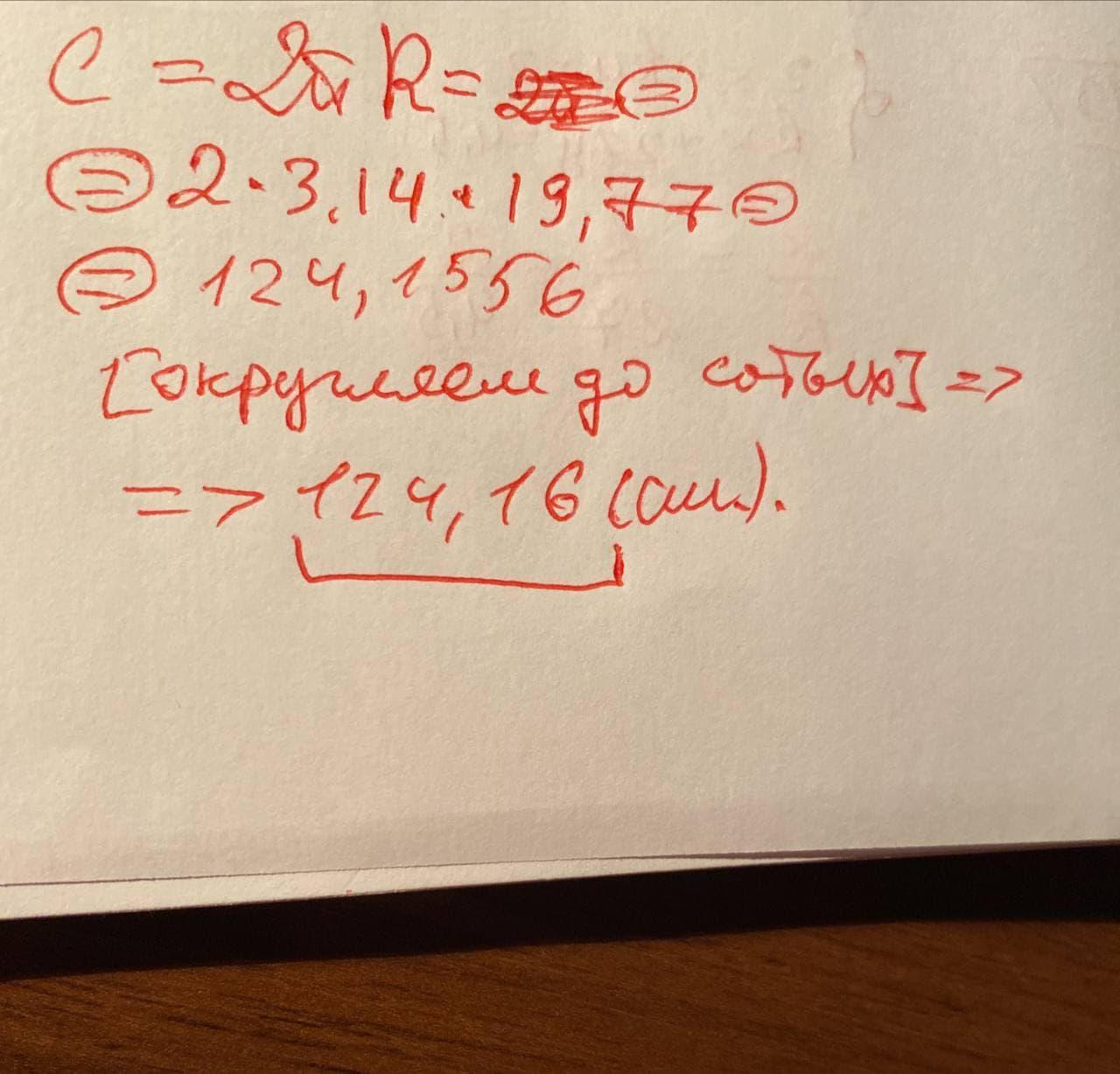Как я понял с условия, надо найти длину окружности и результат округлить до сотых. Смотрите фото.