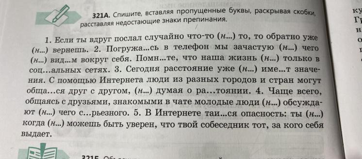 321A. Спишите, вставляя пропущенные буквы, раскрывая скобки,