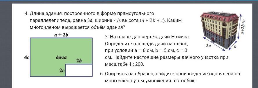 3 а^2 в+6 ав^2+3 авс многочленом выражается объём здания ^2( в квадрате)