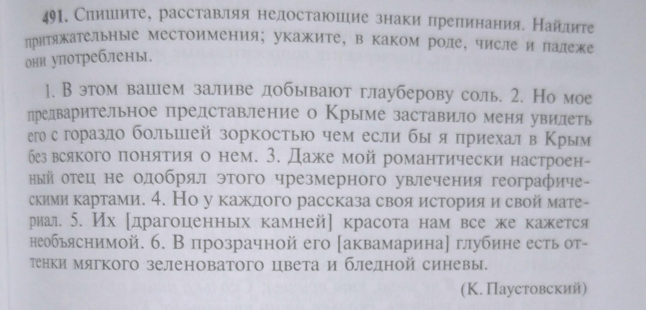 1)заливе, добывают… 2) о Крыме, заставило; зоркостью, чем… 3)отец, не одобрял…4)история, и свой…5)красоты, нам…6)глубине, есть;мягкого, зеленоватого…
