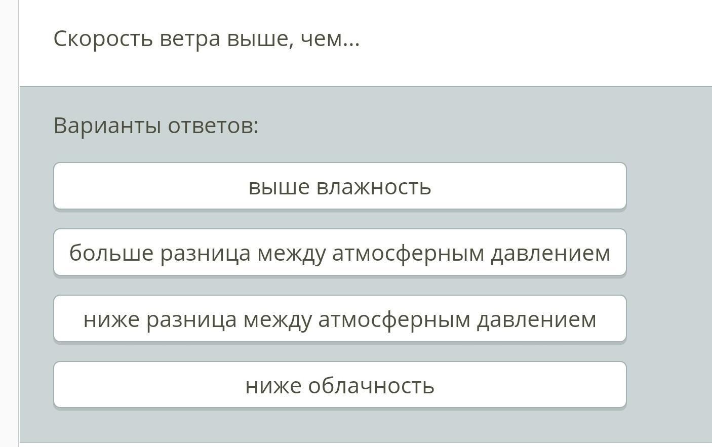Скорость ветра выше,чем больше разница между атмосферным давлением.