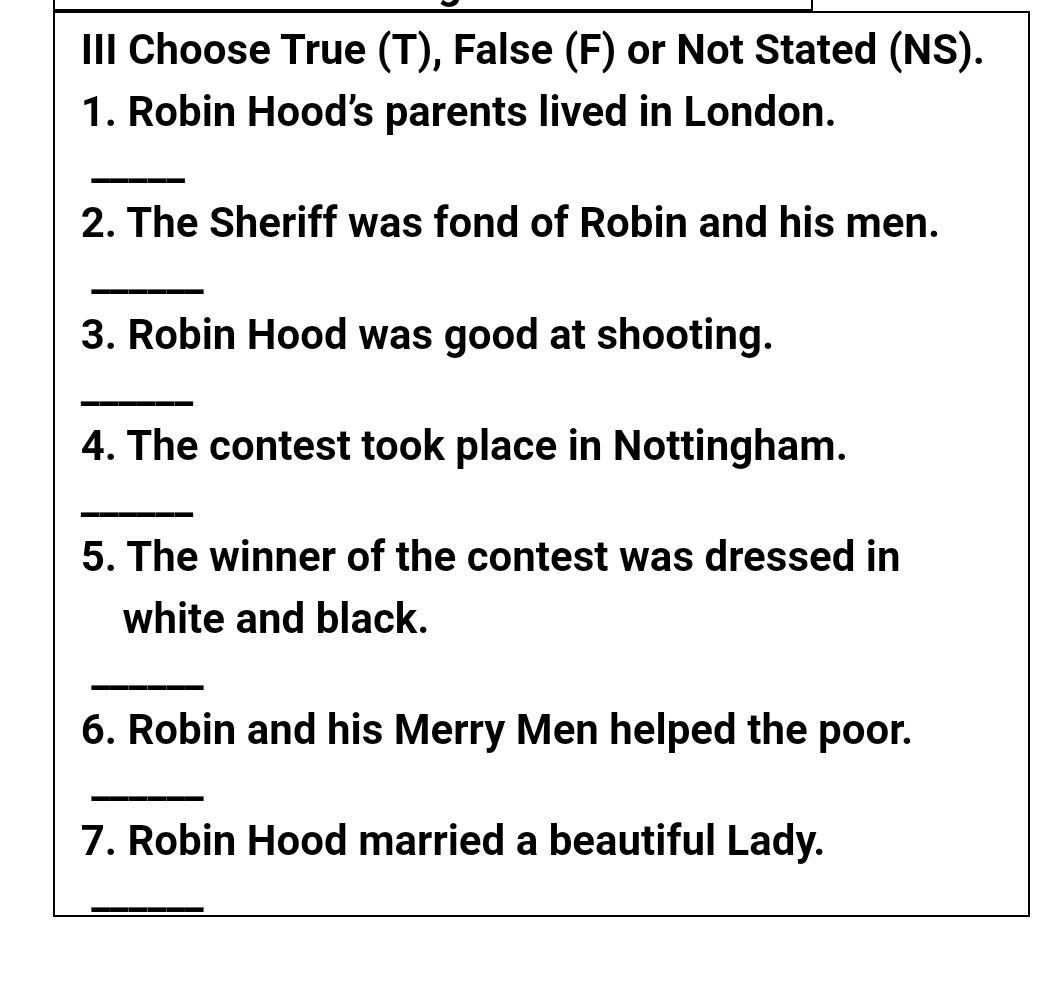 The town was decorated with flags and the field was full of people. The Sheriff knew that Robin Hood and his men were always dressed in green, so he looked everywhere for them but couldn’t find anybody dressed in that colour.