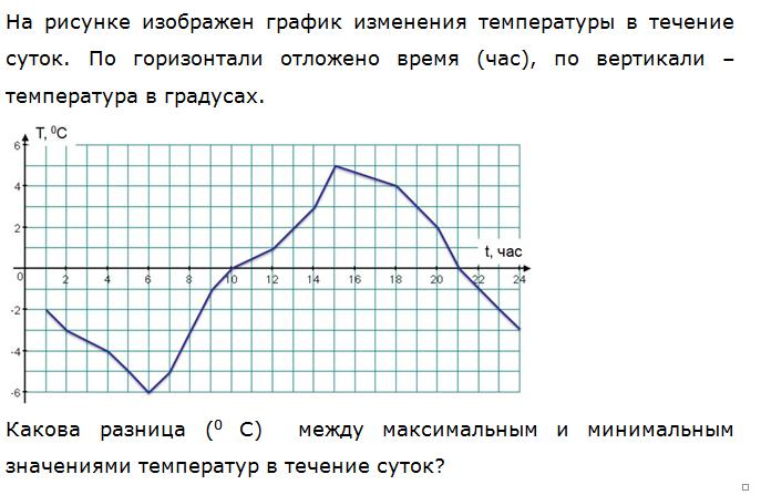 Максимальная температура в течении суток была 5 градусов, минимальная -6 градусов, разница 11.