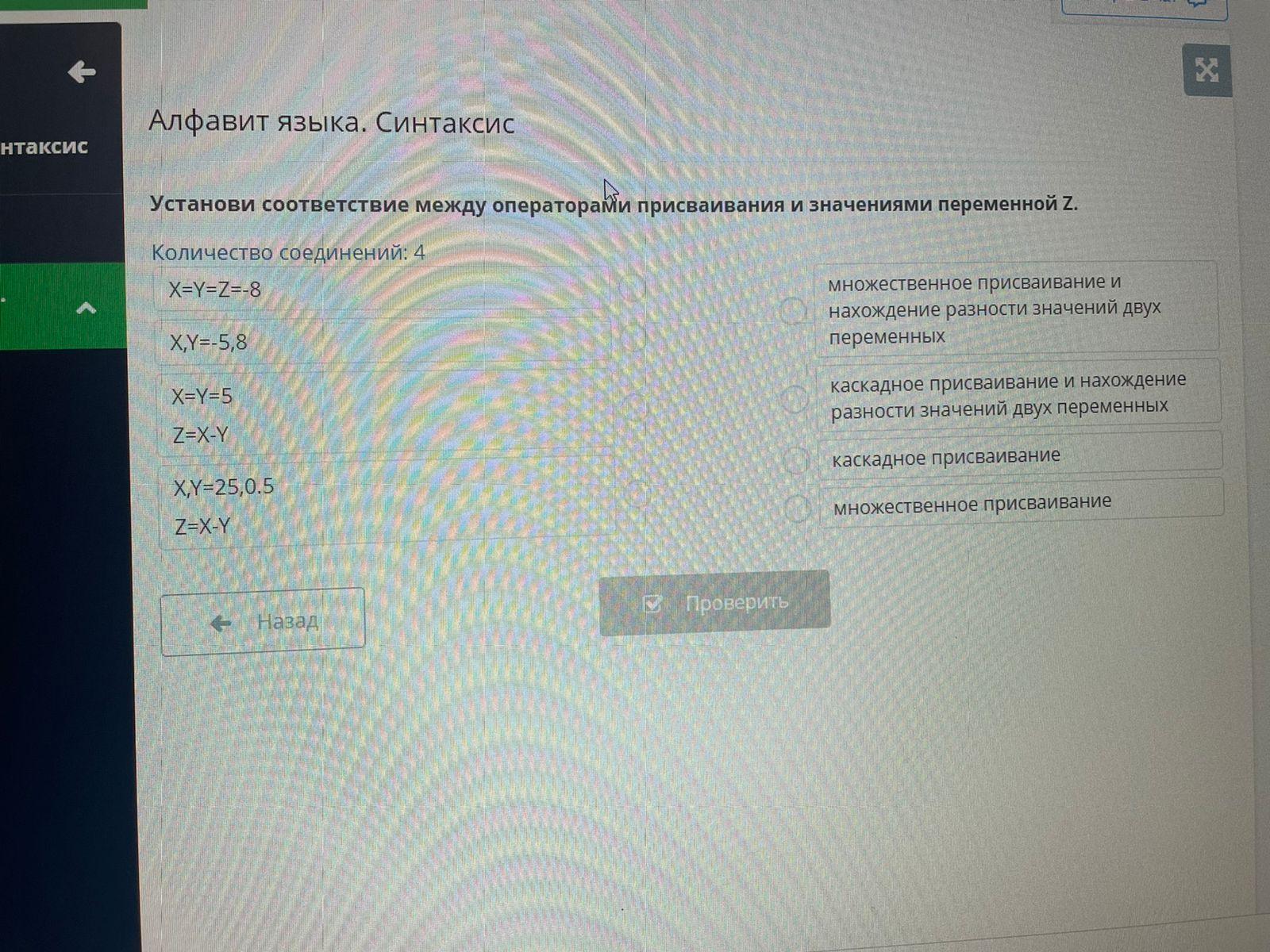 Установи соответствие между операторами присваивания и значениями переменной Z.