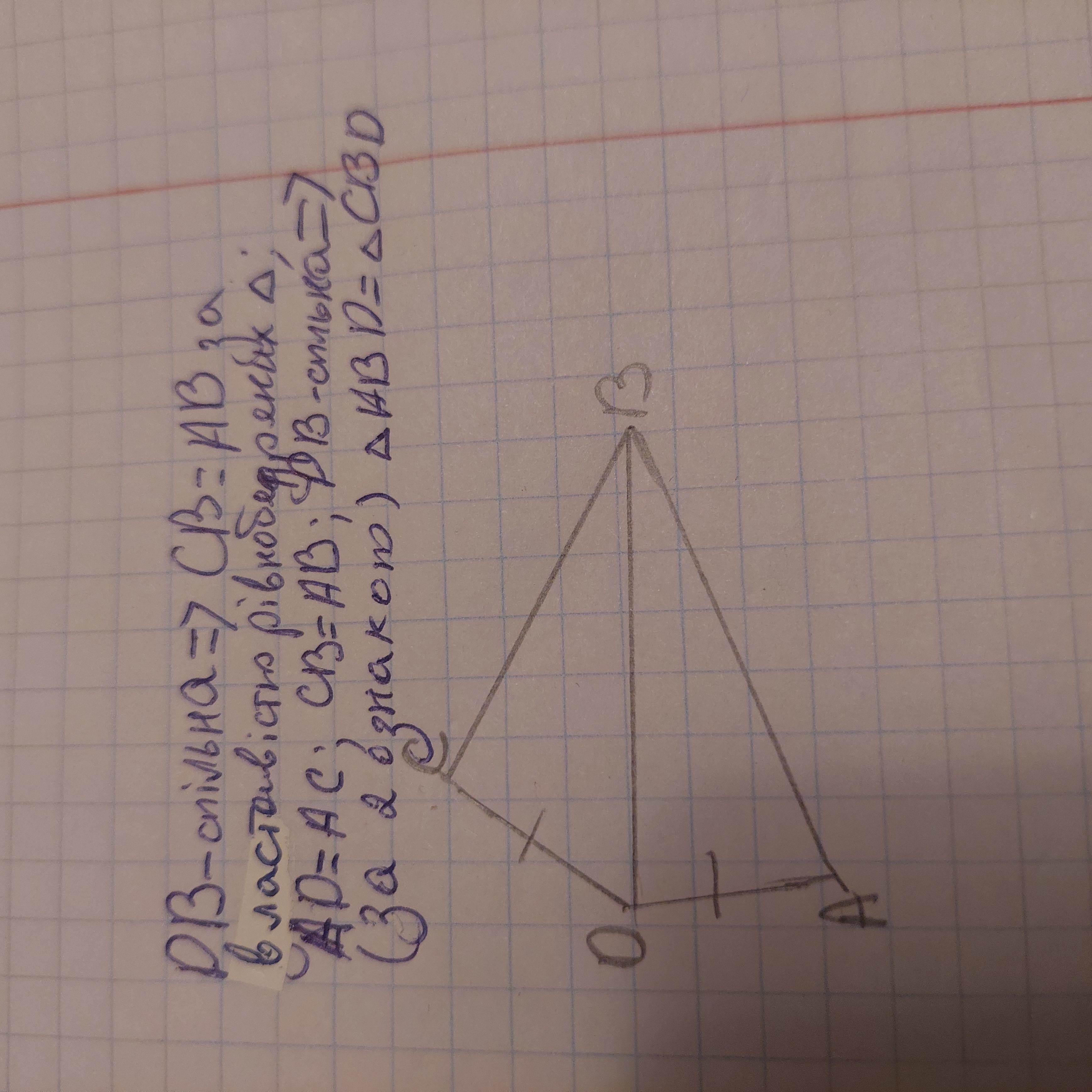 2. На рисунку зображено два рівнобедрених трикутники з рівними основами, Доведи рівність трикутників ABD та CBD.