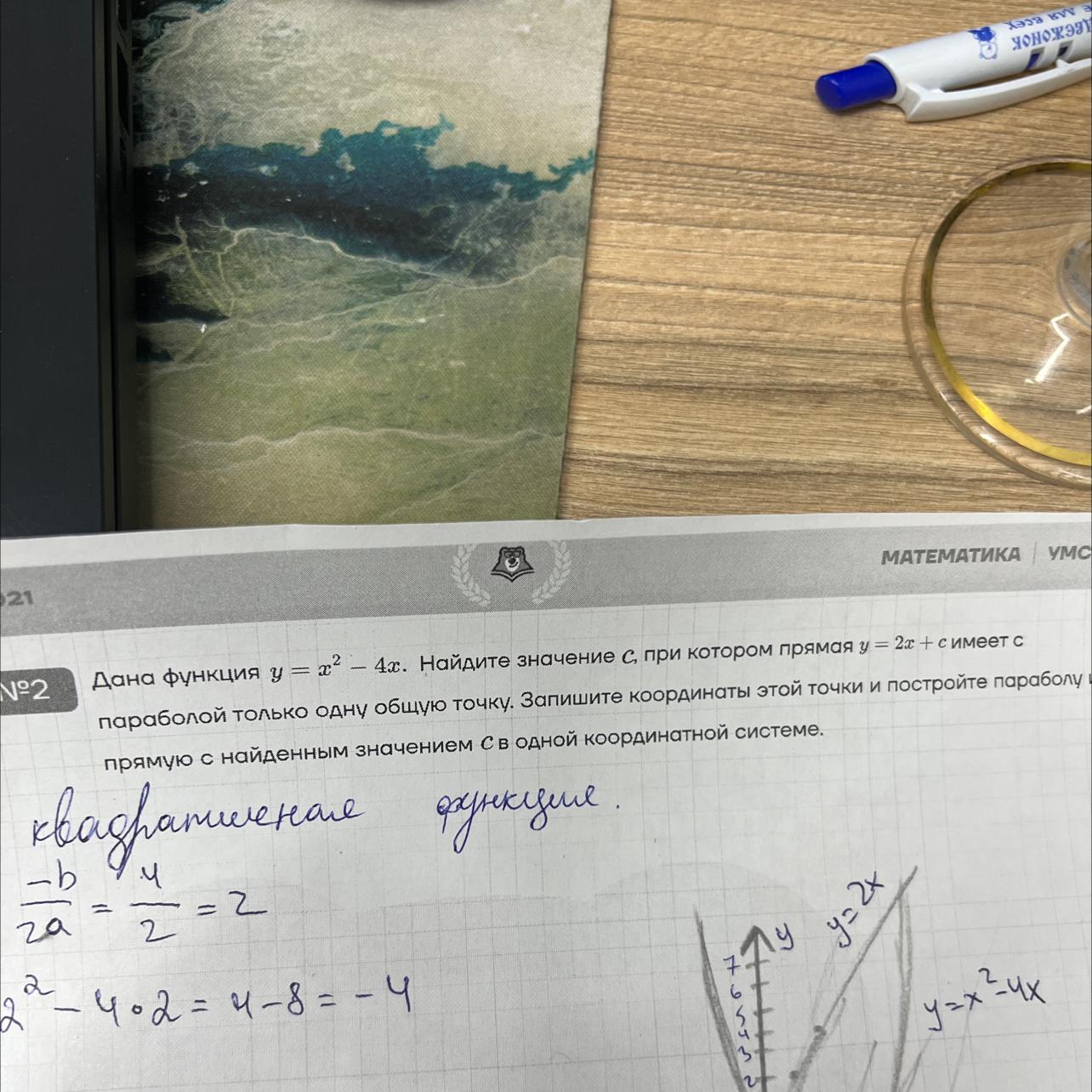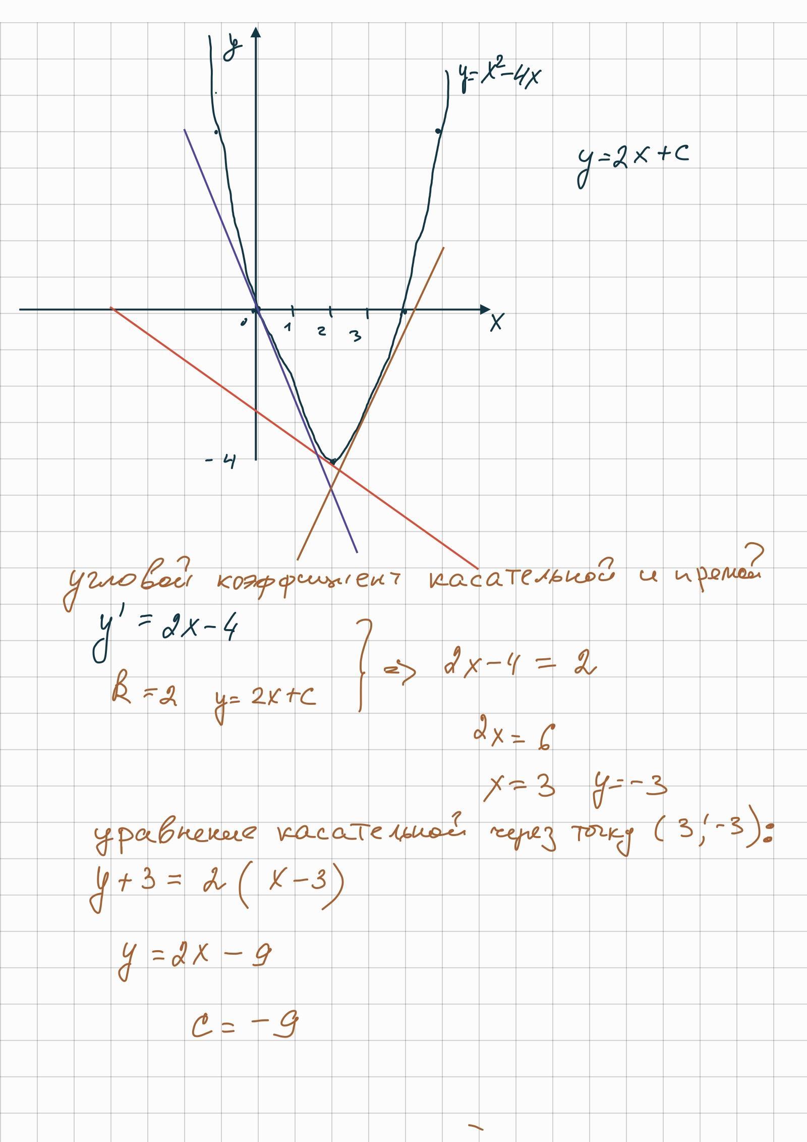 Уравнение касательной и нашей прямой должны иметь одинаковый угловой коэффициент 2