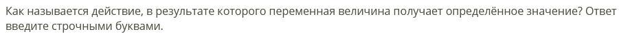это действие в результате которого переменнаявеличина получает определенное значение.