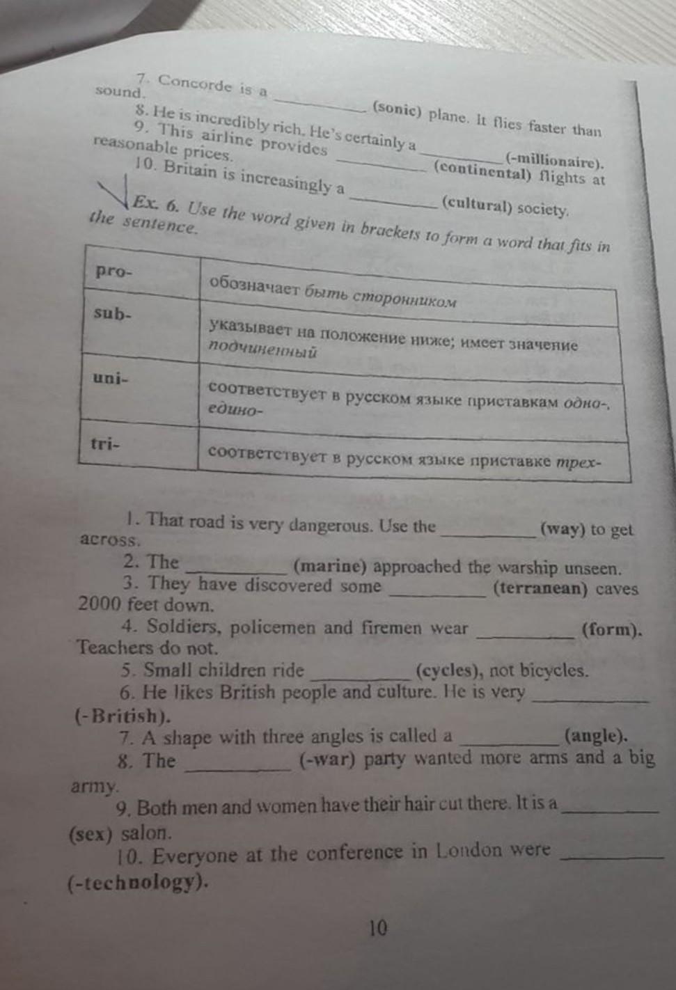 помогите вставить префиксы post , mono , anti , non в 5 номере вставить префиксы multi , trans , super а в 6 pro , sub , uni , tri