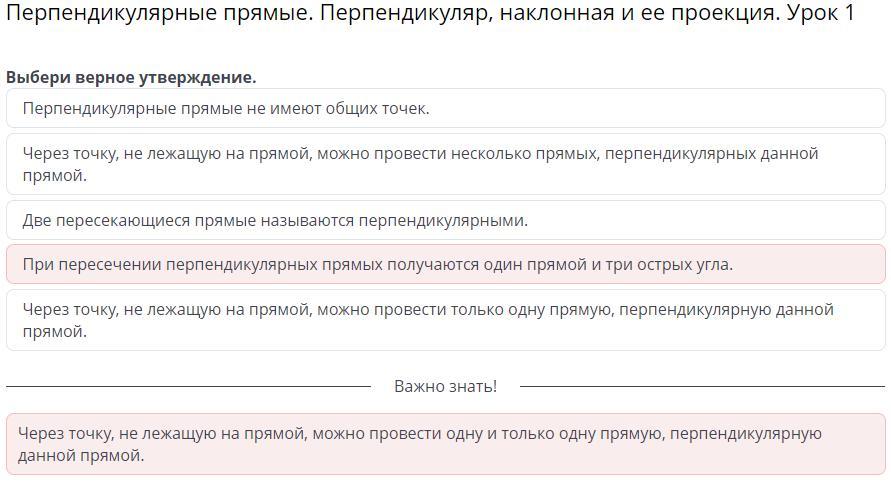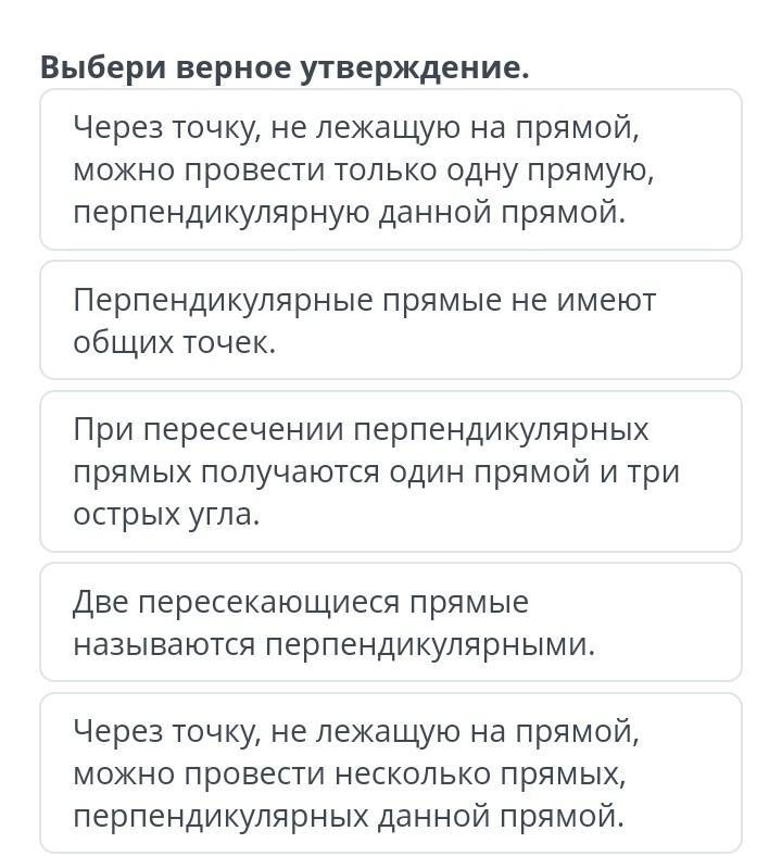 Ответ : Через точку, не лежащую на прямой, можно провести только одну прямую, перпендикулярную данной прямой.