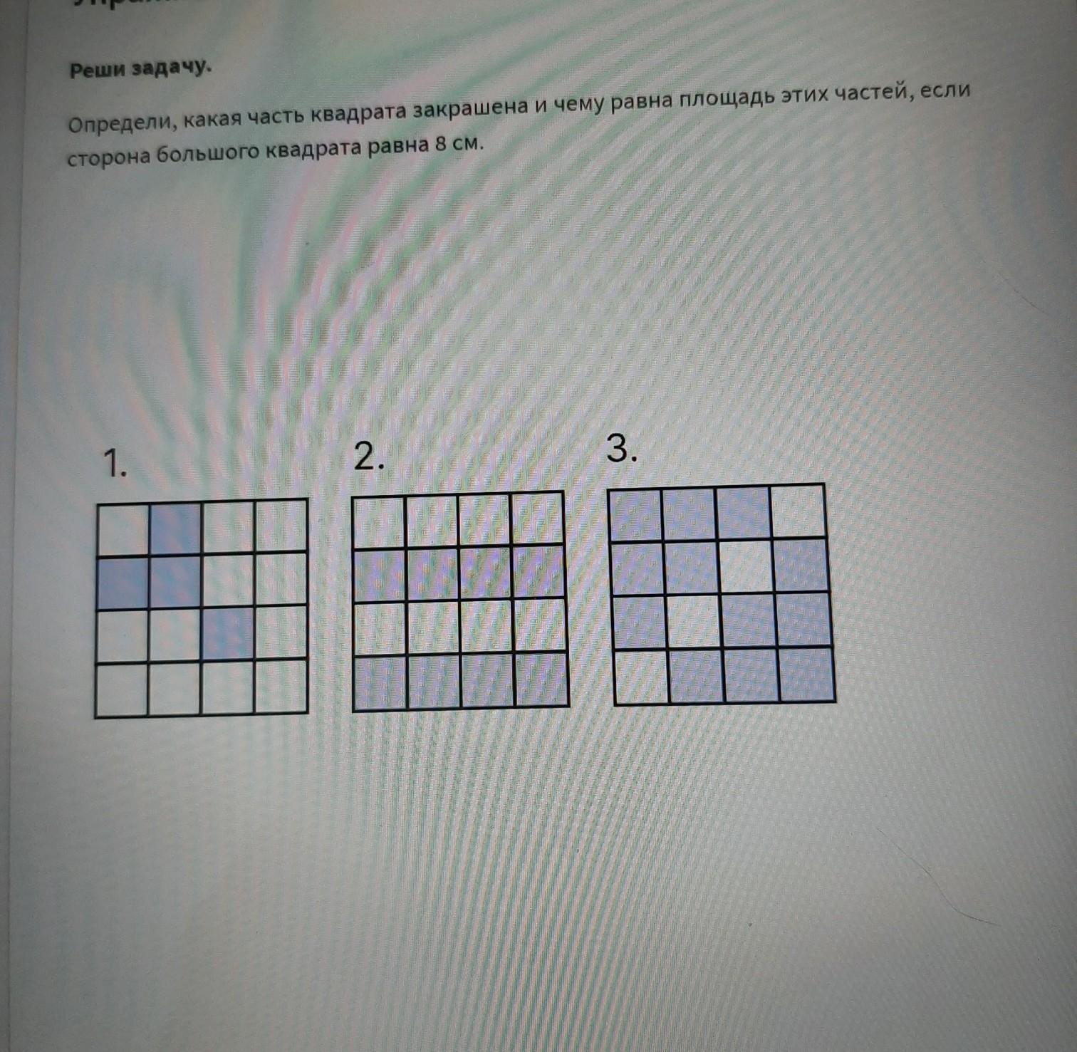 2) 8 : 16= 8/16= 1/2 часть закрашена