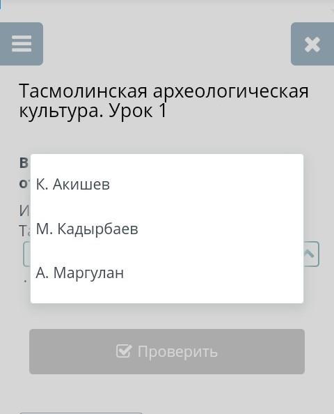 Имя археолога-первооткрывателя Тасмолинской культуры
