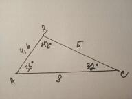 АВ²=ВС²+АС²-2*ВС*АС*cos32°=64+25-2*8*5*0,8480=89-67,84=21,16;