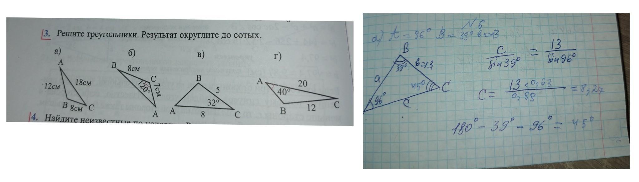 sinA=BC*sinC:AB=5*0,5299:4,6≈0,58; ∠А=36°