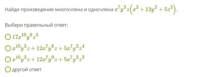 х^10у³z+12х^7у^6z+5x^7у³z⁴