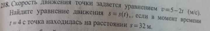s=∫(5-2t)dt=5t-t²+c; подставим значения S и t для нахождения константы с.