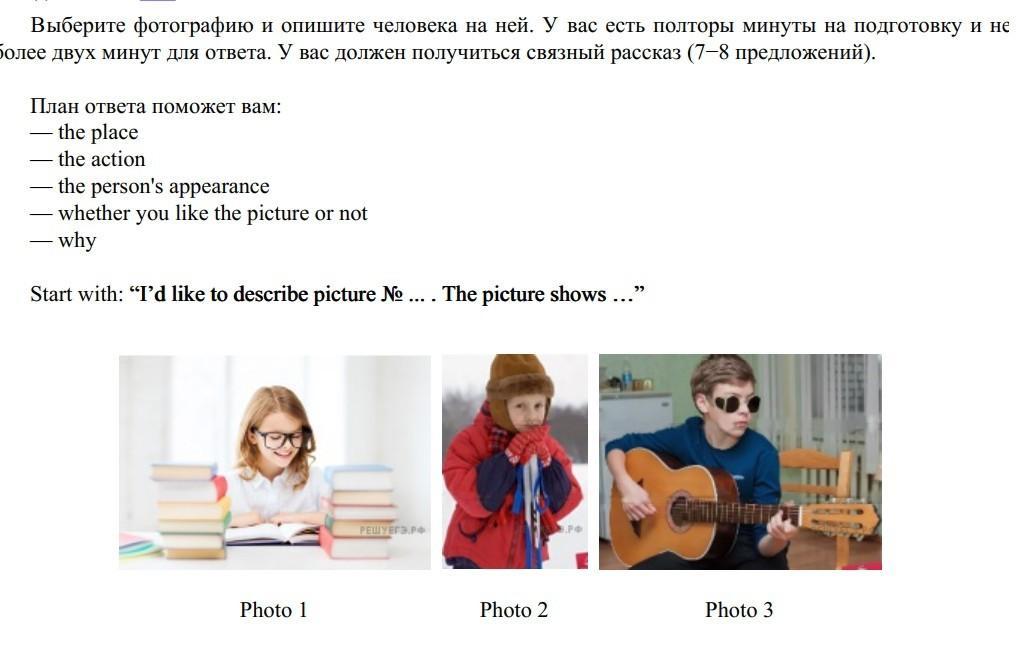 более двух минут для ответа. У вас должен получиться связный рассказ (7-8 предложений).