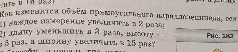 2) если длину уменьшить в 3 раза, высоту в 5 раз ,а ширину в 15 раз, то можно видеть , что длина и высота уменьшены во столько раз, во сколько увеличена ширина, то есть объем останется без изменения