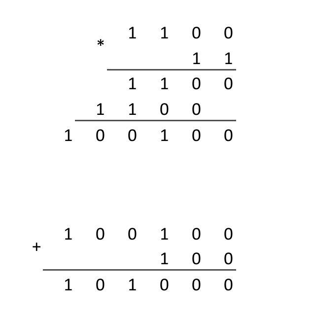1100₂ = 1 * 2³ + 1 * 2² + 0 * 2¹ + 0 * 2⁰ = 8 + 4 = 12₁₀
