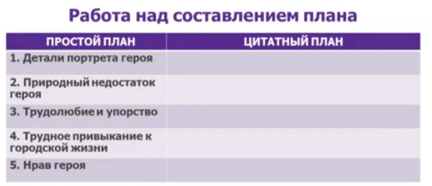 (муму) Работа над составлением плана ПРОСТОЙ ПЛАН ЦИТАТНЫЙ ПЛАН