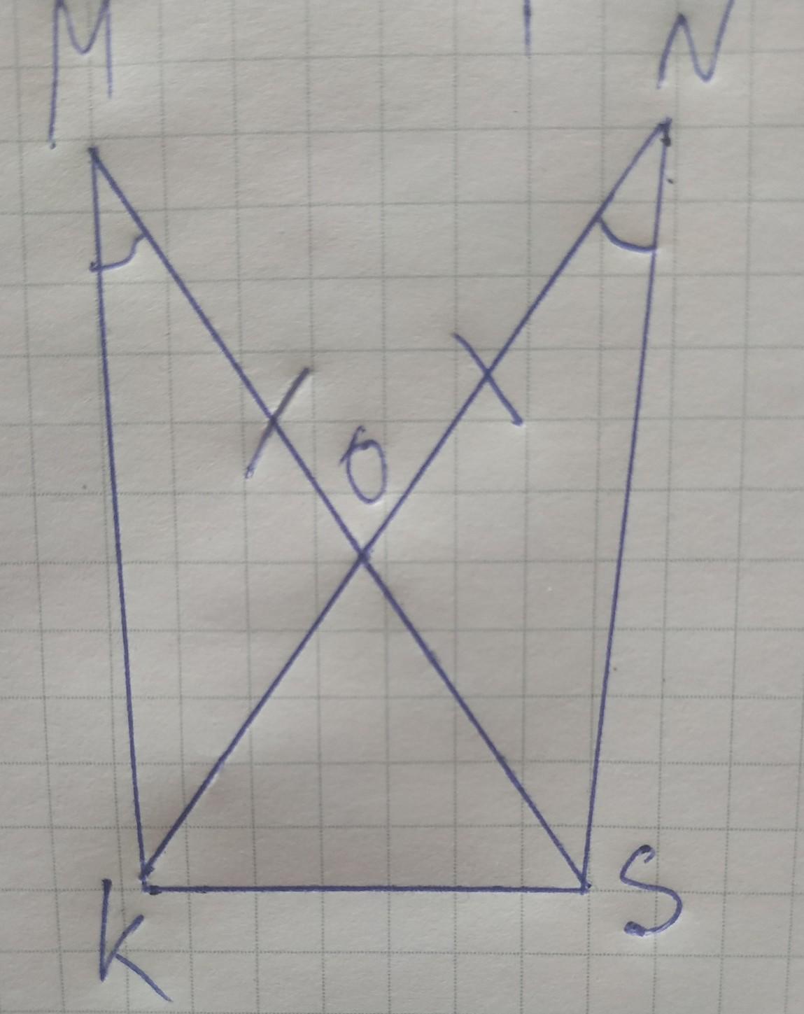⇒ ΔMOК=ΔNOS (по стороне и двум прилежащим к ней углам) ⇒ равенство элементов ⇒ KM=NS