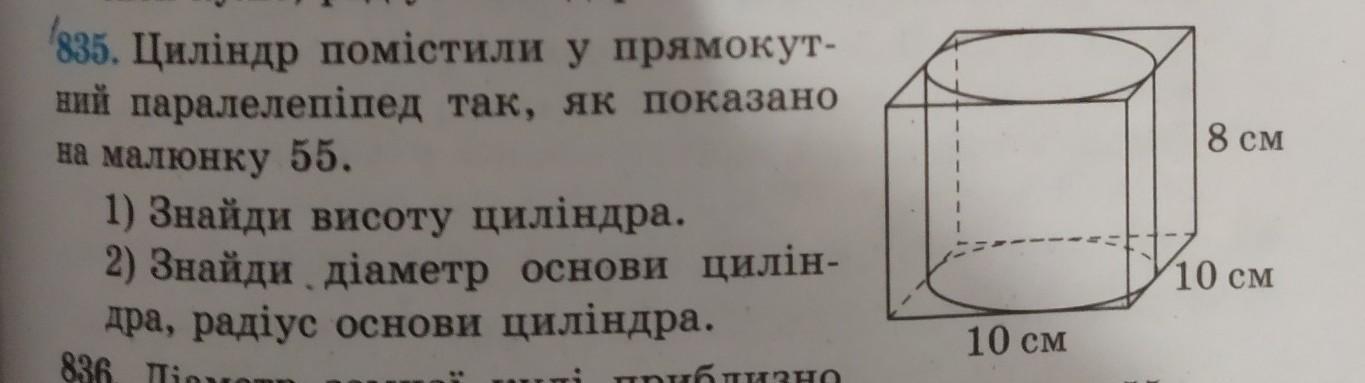 1). Висота циліндра та ж, що і висота паралелепіпеда. Тому ми можемо побачити, що висота циліндра дорівнює 8 см. (на малюнку зазначено, що висота паралелепіпеда=8 см)