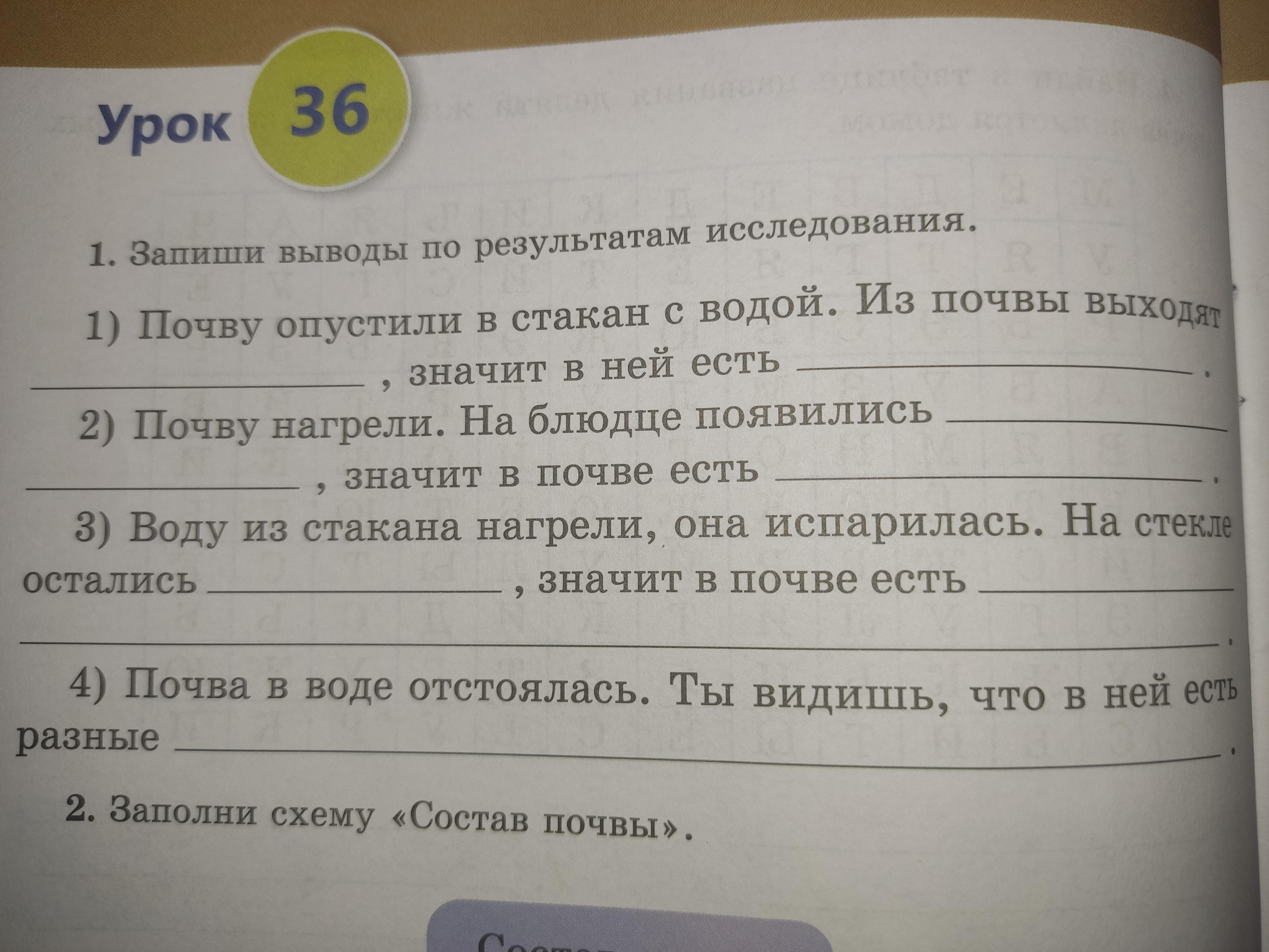 Запиши выводы по результам исследовани почвы. Естествознания 3класс. Что там написать нужно?помогите.