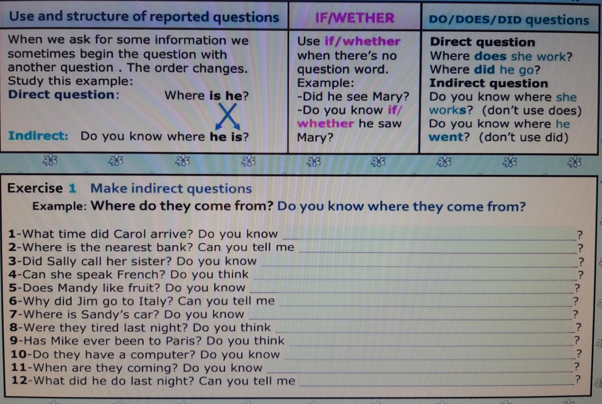 12. Can you tell me what he did last night?