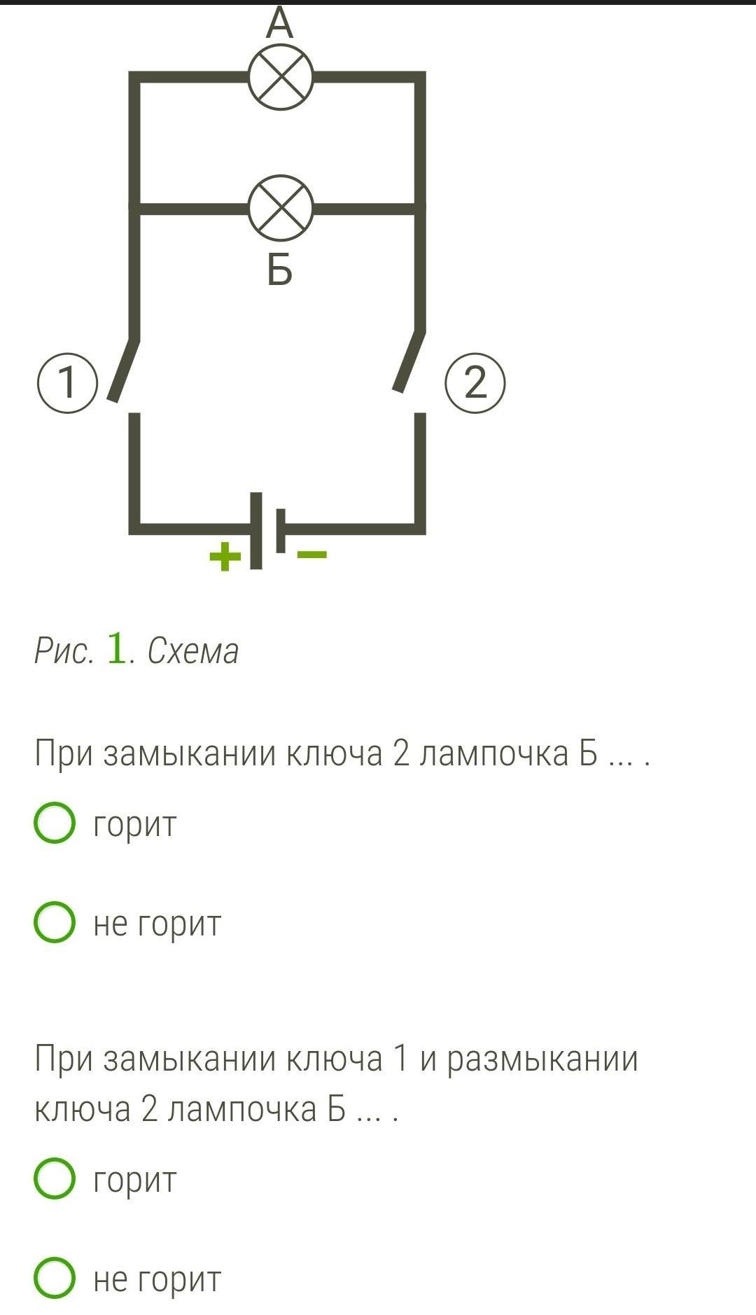 В обоих вопросах цепь не замыкается (один из ключей остается разомкнутым) и лампа Б - не горит