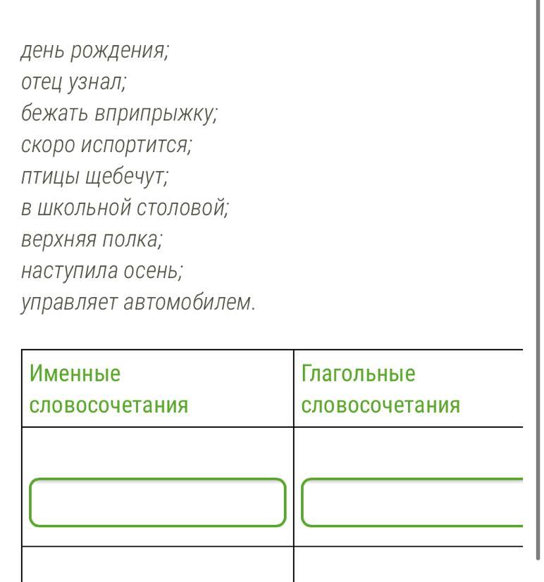 Распредели словосочетания по таблице именные словосочетания,глагольные словосочетания.всего по 3 ответа