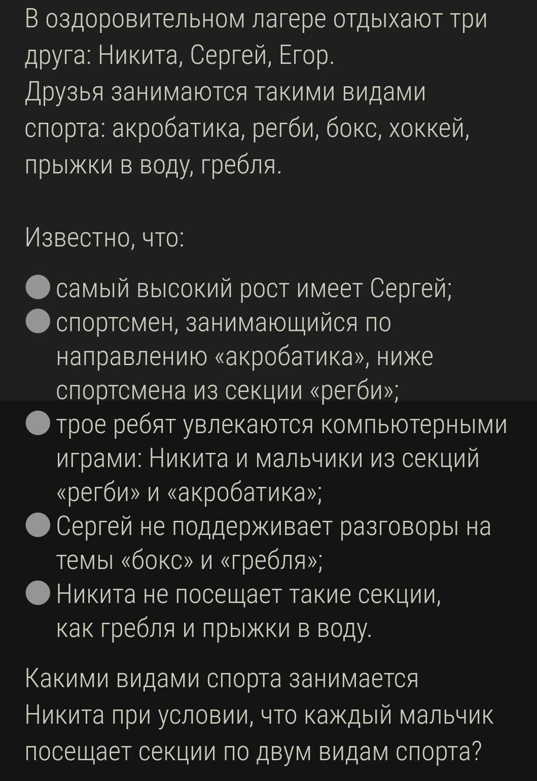 бокс и хоккей, так как в остальных вариантах есть гребля а по условию он ей не занимается